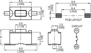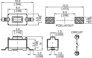 3.5 x 6mm surface mount (gull-wing) tact switch