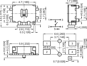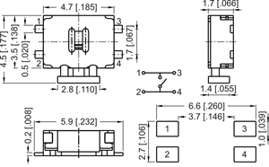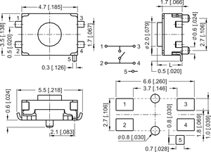 3.5 x 4.7 side push switch, bending terminals, w/o post