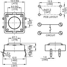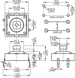 12 x 12mm through hole switch, square stem