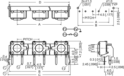 2. PITCH = 14mm A = (N-1) x PITCH B = A + 8 C = B +1.5 D = B + 0.4