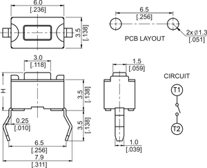 3.5 x 6mm through hole switch