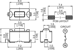 3.5 x 6mm surface mount (gull-wing) tact switch