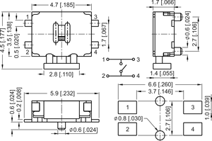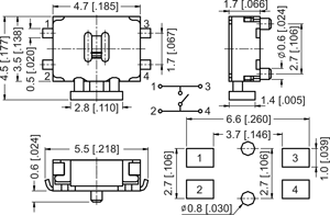 3.5 x 4.7 side push switch, bending terminals, w/o post