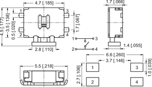3.5 x 4.7 side push switch, flat terminals, w/o post