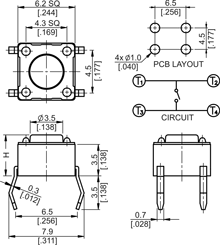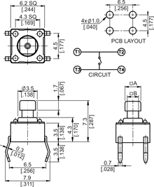 6 x 6mm through hole switch, square stem